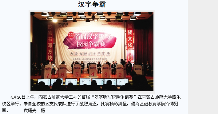 《内蒙古日报》2015年4月27日第三版报道了该项活动,以下为内蒙古日报数字报刊截图。