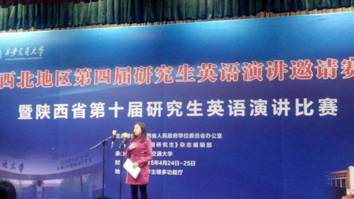 2015年4月24日至25日,西北地区第四届研究生英语演讲邀请赛暨陕西省第十届研究生英语演讲比赛在西安交通大学举行,本届大赛由陕西省人民政府学位办公室和 《中国研究生》杂志社联合主办,西安交通大学承办。公司2014级汉语国际教育硕士阿润作为公司第七届研究生英语演讲第一名获得者,代表公司参加了西北地区比赛,最终获优秀奖。公司公共外语教育学院老师郭玺平作为指导教师一同前往,并给阿润提供了详尽的指导。