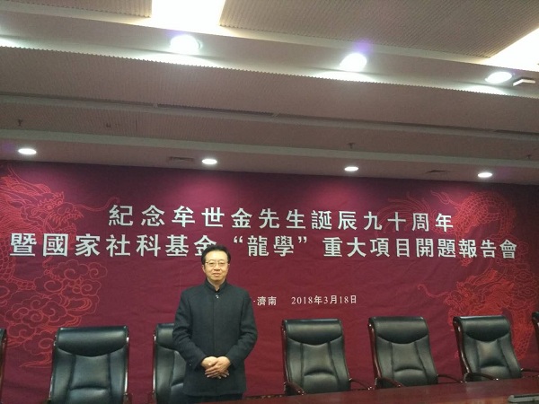 3月18日,山东大学儒学高等研究院主办“牟世金先生诞辰九十周年暨国家社科基金‘龙学’重大项目开题报告会”。中国《文心雕龙》学会会长左东岭教授以及党圣元、张晶、陶礼天、李建中、李平、戚良德等六位副会长参加了会议。我院万奇教授(中国《文心雕龙》学会常务理事)应邀参加会议,并做了题为《精雕“全龙”,泽被后学——浅谈牟世金先生“龙学”贡献》的主题报告。在国家社科基金‘龙学’重大项目开题论证环节,国家社科基金重大项目《〈文心雕龙〉汇释及百年“龙学”学案》(项目批准号:17ZDA253)的首席专家戚良德教授做了开题报告。我院万奇教授为该项目成员,并担任项目子课题主持人。这表明由王志彬先生带头开创的公司“龙学”研究有了重要突破,进入新的发展阶段。